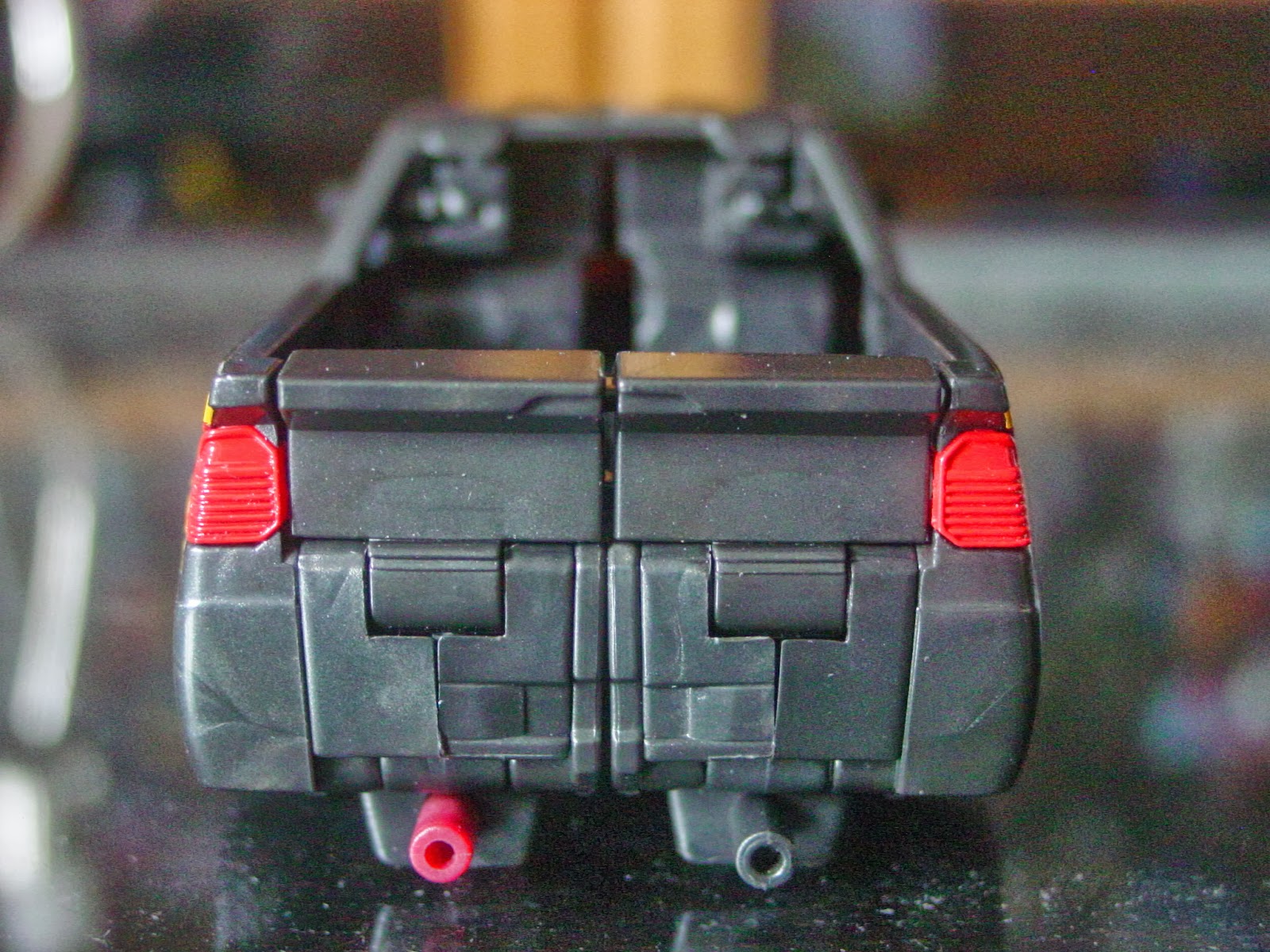 There was a massive quality control problem with almost every single Hoist (and Electrons) figure, in that the charcoal-coloured shoulder pieces were attached to the wrong shoulders, meaning Hoist's arms cannot hang straight down. Fixing the issue is simple enough, but requires tools I don't currently own to remove a metal pin from each shoulder to allow them to be swapped. A second issue, the misassembly of the central part of the torso, meant that he would not fully transform into robot mode, but fixing that required only a screwdriver. Hoist isn't a major player for me, so I'm not overly fussed by the QC issues, but it is a major gaffe considering the expense of the set.