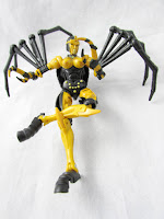 However, while the overall design is phenomenal - slender, well-proportioned and as detailed as it needed to be to replicate such dated CGI - the paint job is appallingly meagre. The majority of the paint is a sunshine yellow - warmer and more vibrant than the plastic but, by this point, that's never a surprise - with a cooler, possibly metallic yellow on her pelvic 'eyes'. The only additional touches are the copper-coloured spider leg design across her chest and the yellow Predacon insignia on her collar. Her CGI animation model - and, indeed, the Masterpiece figure - featured a range of metallic shades along the spectrum from gold to copper, along with metallic green and purple for certain areas. None of that variety is in evidence here, and barely any of the paint is remotely metallic. The applications of red paint visible in beast mode are concealed here - the spider's eyes sit inside her pelvis, while two of the red markings from her spider abdomen are still visible on her back, and the third has been folded inside her (very small and tidy) backpack. It feels cheap and incomplete, and really lets the mold down... And I can't help but think it's partly deliberate, to limit the amount of thunder this figure steals from the Masterpiece.